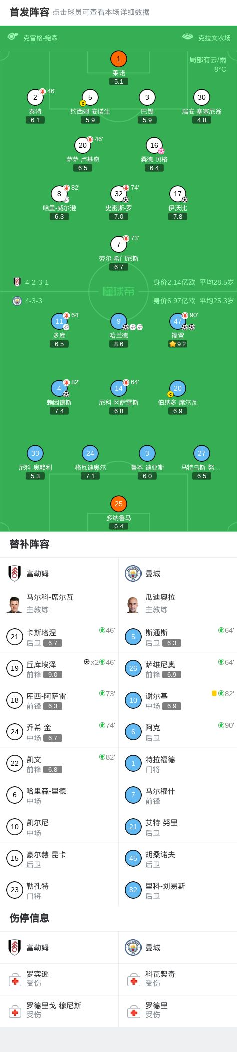 第73分钟,B席解围不远,丘库埃泽抽射破门,富勒姆3-5